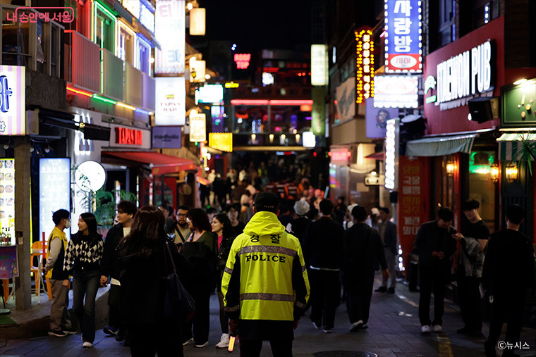 ‘홍대 관광특구’는 레드로드 일대에 설치된 대형 재난문자 전광판을 통해 실시간 혼잡도를 안내한다. 혼잡구역에는 우측통행을 유도하는 안전펜스를 200개 이상 설치하고, 안전관리 요원 616명을 배치해 인파밀집 사고를 예방한다.