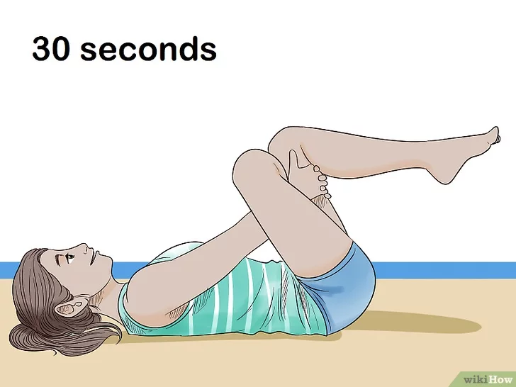 - 가슴에 팔을 교차하여 놓은 채로 바닥에 누워 몸통말기 운동(trunk curls)을 시도해보세요. 상복부 근육을 이용해 몸통을 바닥으로부터 15도 들어올린 뒤 5초 동안 버티세요. 매일 5-10세트씩 하세요.