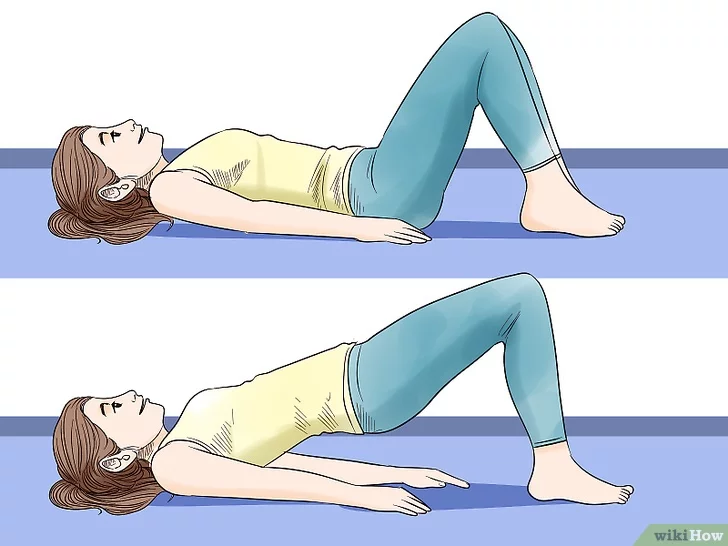 - 바닥에 무릎을 구부리고 누워 골반경사 운동을 시도해보세요. 엉덩이나 다리 근육을 사용하지 않고 하복부 근육을 조여 허리를 바닥에 대보세요. 5초 동안 버티는 세트를 5-10번 반복하세요.