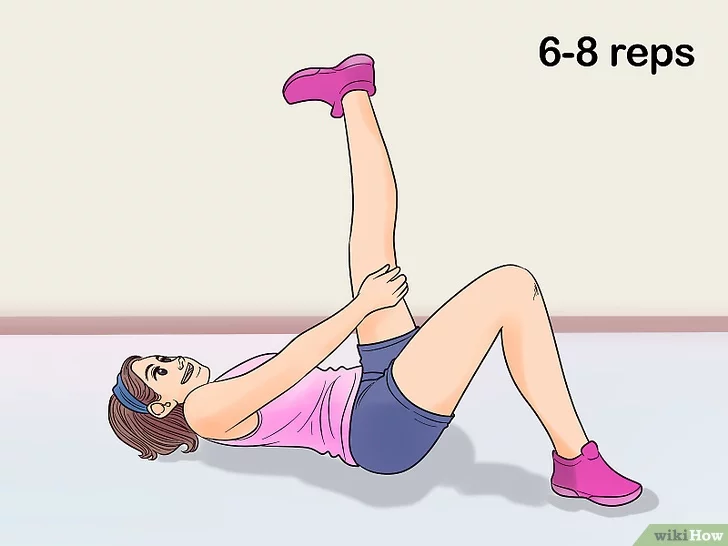 - 왼쪽 다리를 6-8회 정도 스트레칭하세요. 마지막 세트를 할 때는 다리를 곧게 뻗어 발꿈치가 천장에 닿도록 30초도록 버티세요.