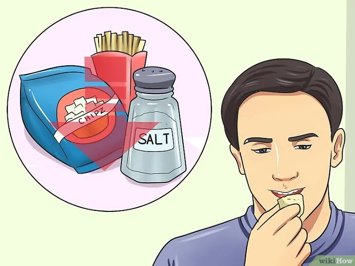 • 감자칩, 프렛즐, 소금이 곁들여진 견과류와 같은 짠 간식이나 가공 식품에는 소금이 많이 첨가되어 있으니 섭취하지 않는다. 인스턴트 식품을 구매할 때 소금이 덜 추가된 대안책들이 있는지 살펴보자. 캔에 담긴 음식, 양념, 고기 육수, 캔 스프, 육포, 스포츠 음료 등을 구매할 때 소금 함량을 확인해보자