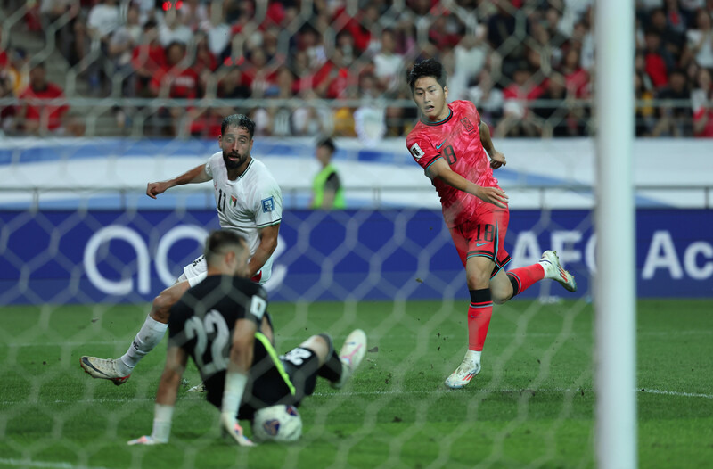 하지만 이강인이 후반 15분 손흥민이 내준 공을 골지역 측면에서 왼발 슈팅으로 연결했지만, 공은 골대를 비껴갔고, 3분 뒤 이강인의 크로스를 머리로 돌린 오세훈의 헤더는 골키퍼의 벽을 뚫지 못했다. 이어 이강인의 프리킥(후28분)과 손흥민의 단독 드리블(후34분)이 팔레스타인 수문장에 또 막혔다. 결정적으로 손흥민의 후반 41분 슈팅이 골대 모서리를 맞고 나오면서 아쉬움을 삼켜야 했다.