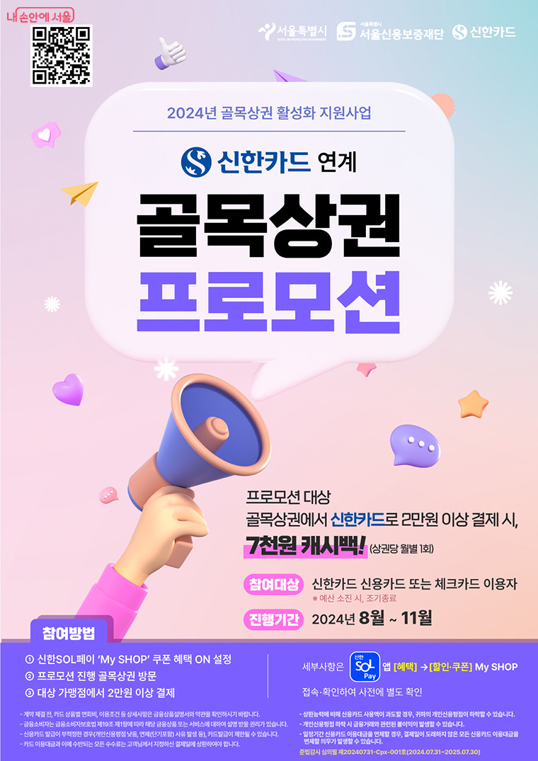 서울신용보증재단이 서울시 골목상권에 활력을 더하기 위해 신한카드 주식회사와 손잡고 8월 1일부터 할인 프로모션을 진행한다.