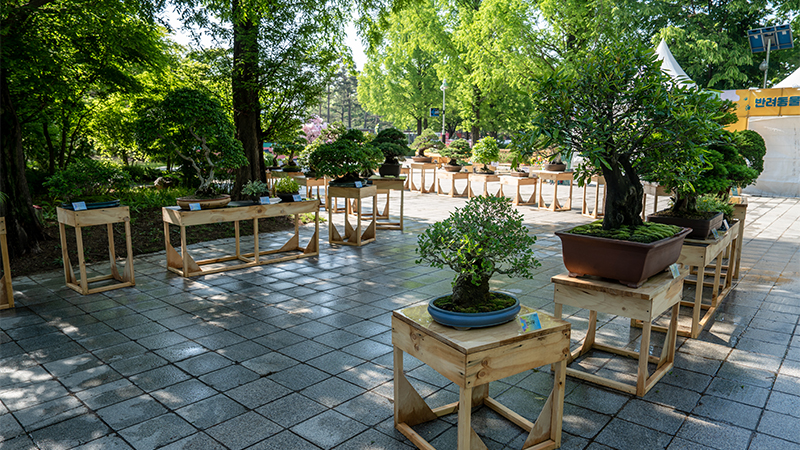 테마 : 일산호수공원 내 잔디밭과 잘 어우러진 분재 전시 연출소개