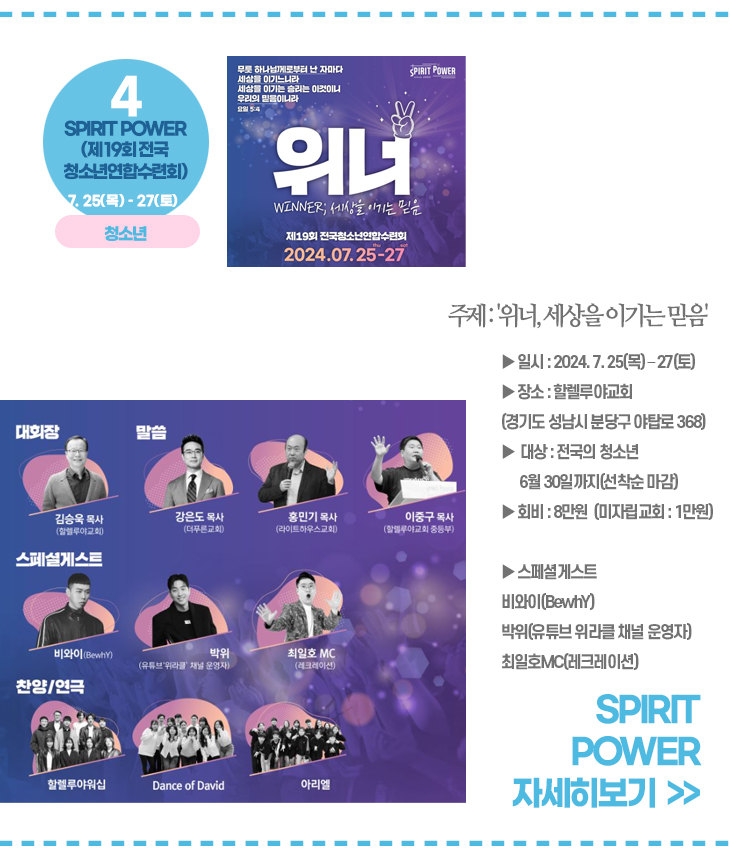 《조이코리아,월드미션,꽃동산,스피릿파워》