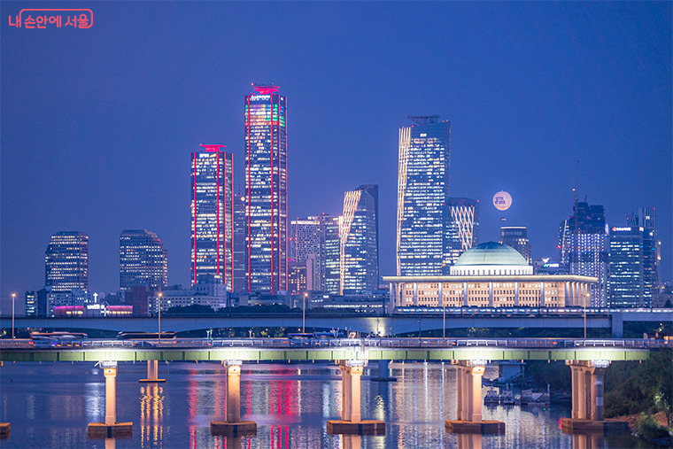 여의도 하늘 휘영청 떠오른 둥근 달, 작년 8월 운영에 들어간 ‘서울달’이 1년 만에 서울을 대표하는 관광 랜드마크로 자리매김한 것으로 나타났다. 지난 1년간 ‘서울달’은 하루 평균 228명이 탑승(총 235일 운영)해 도심 속 비행을 즐겼다.