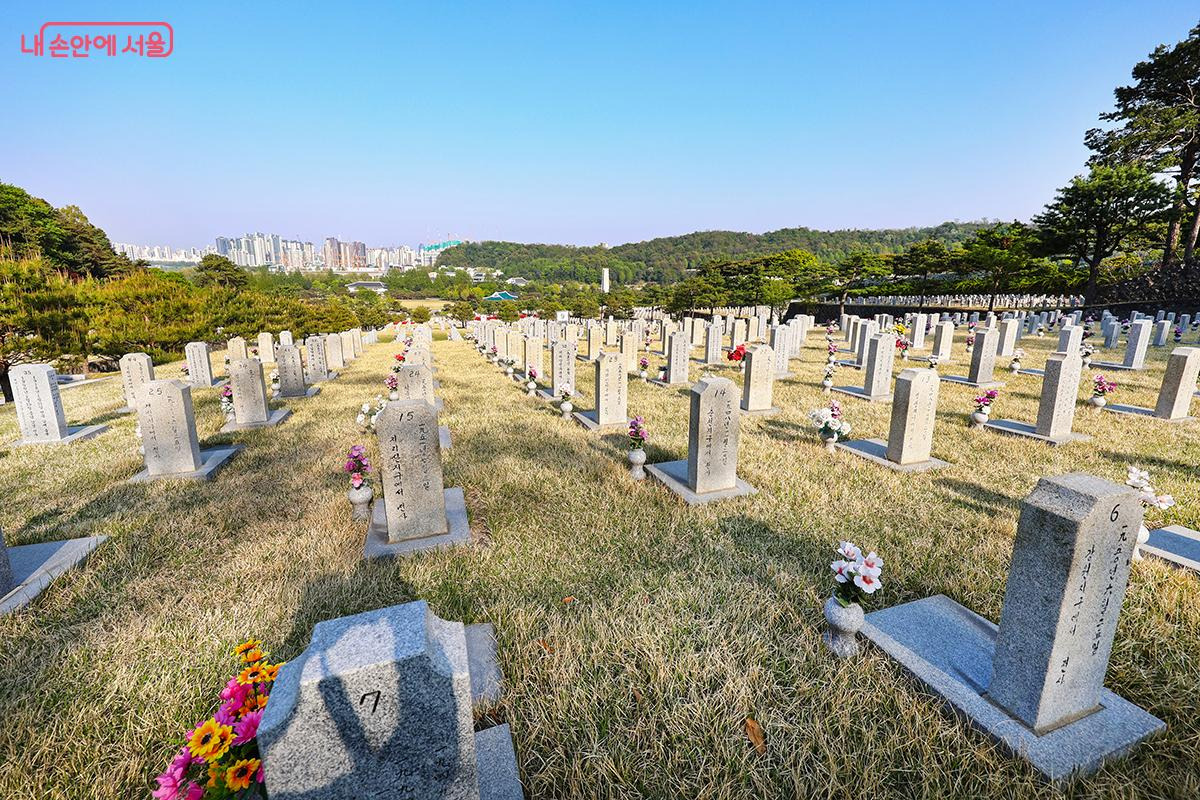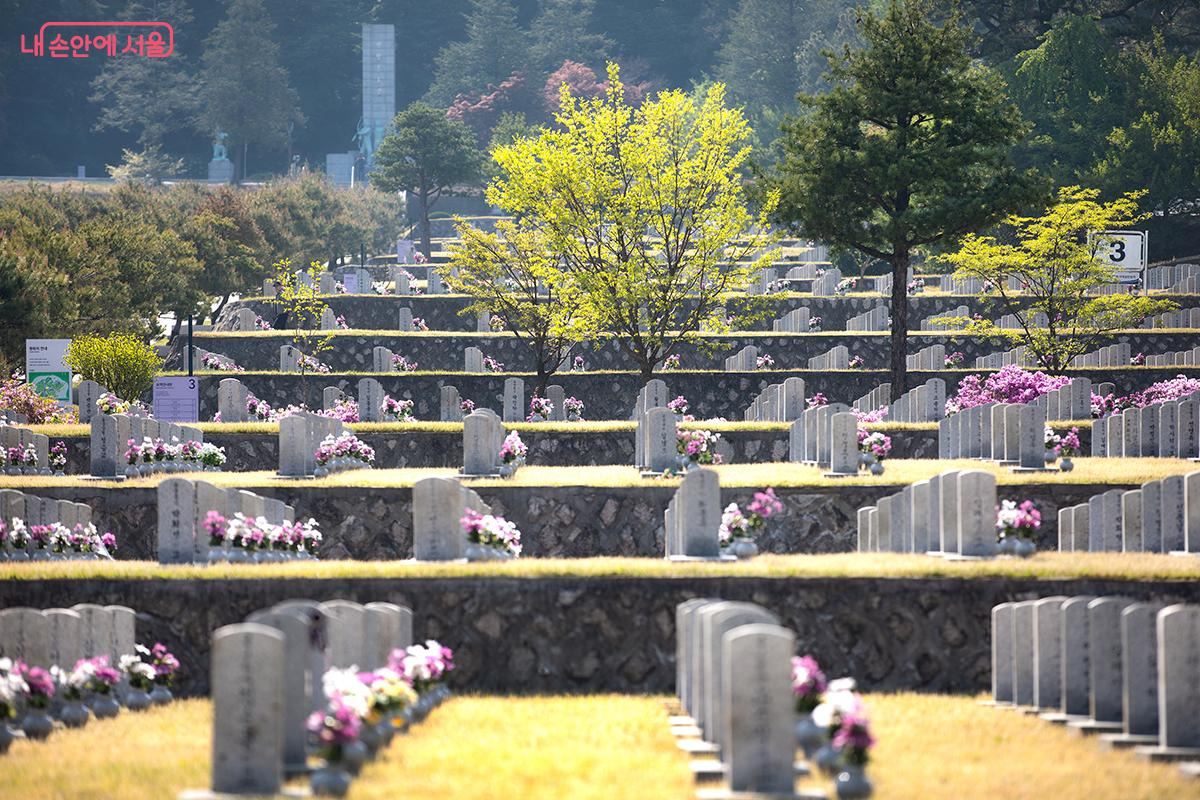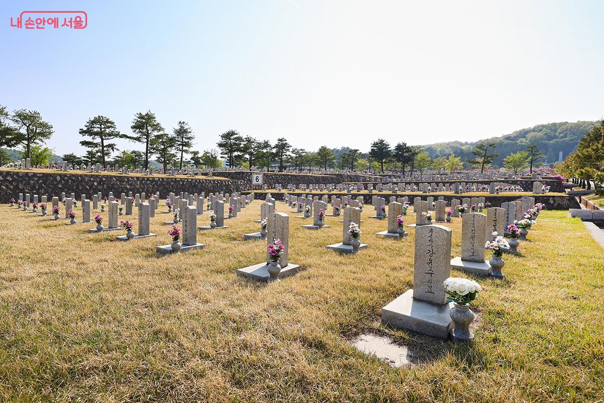 호국영령들이 잠든 현충원 내 묘역 모습