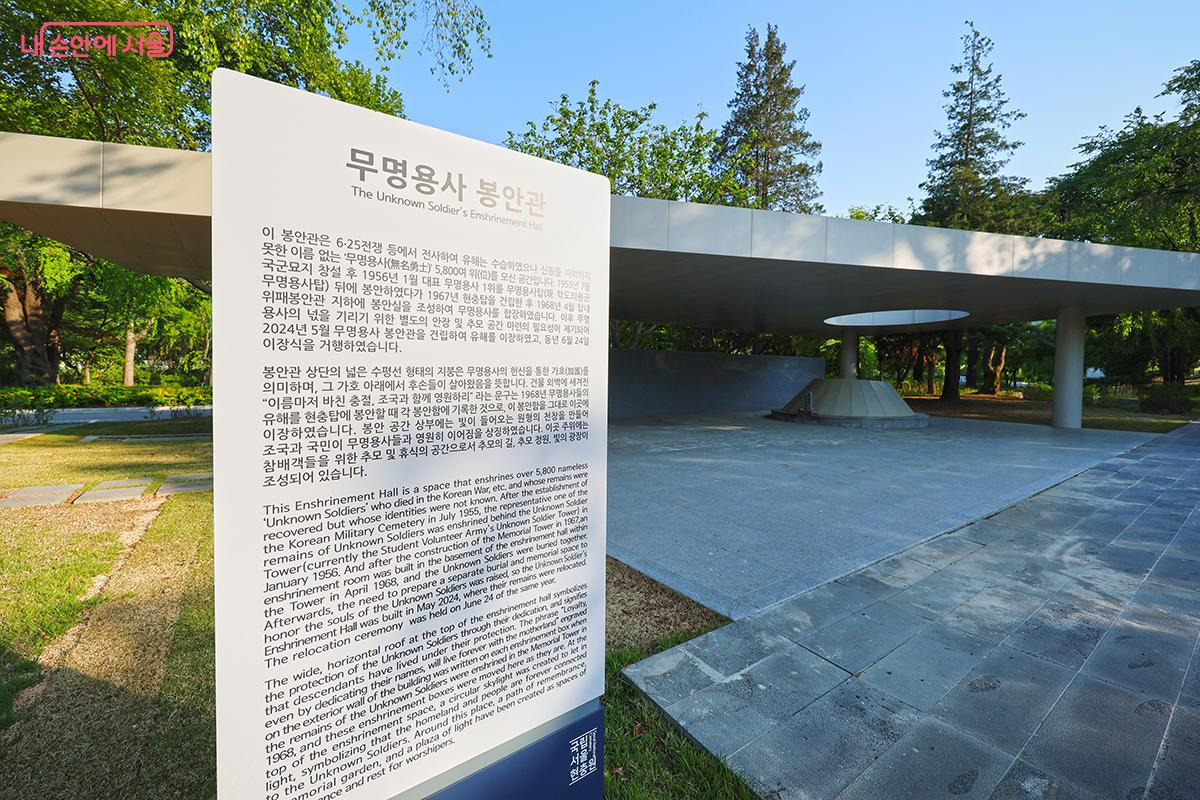 독특한 형태를 하고 있는 무명용사 봉안관 모습
