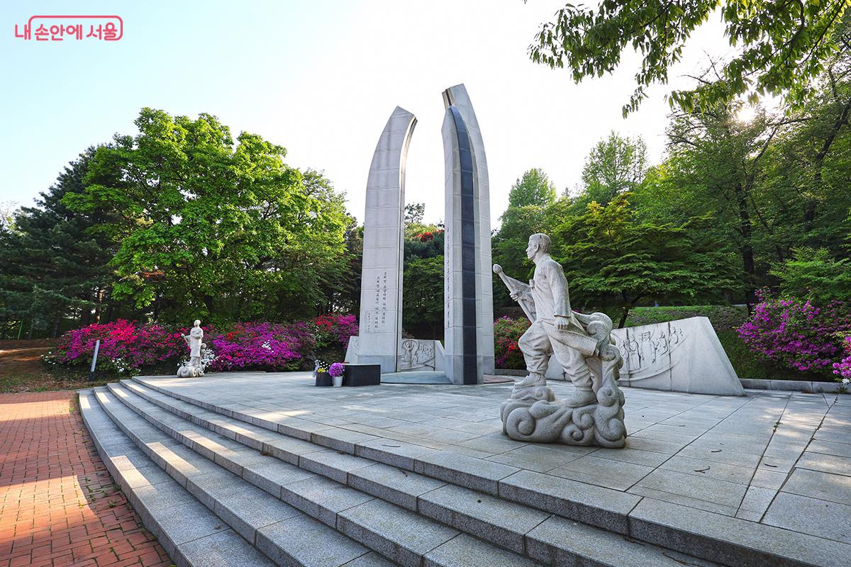봄꽃들과 어우러진 대한독립군 무명용사 위령탑
