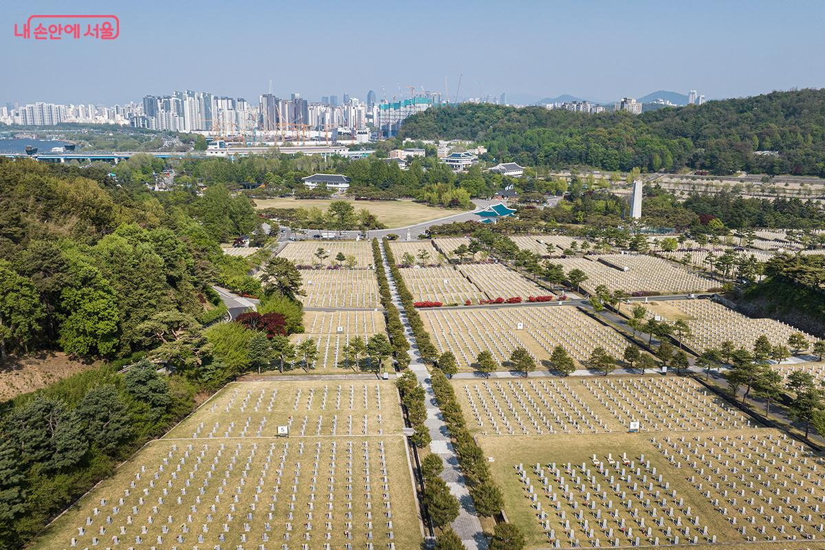 하늘에서 바라 본 국립서울현충원의 모습