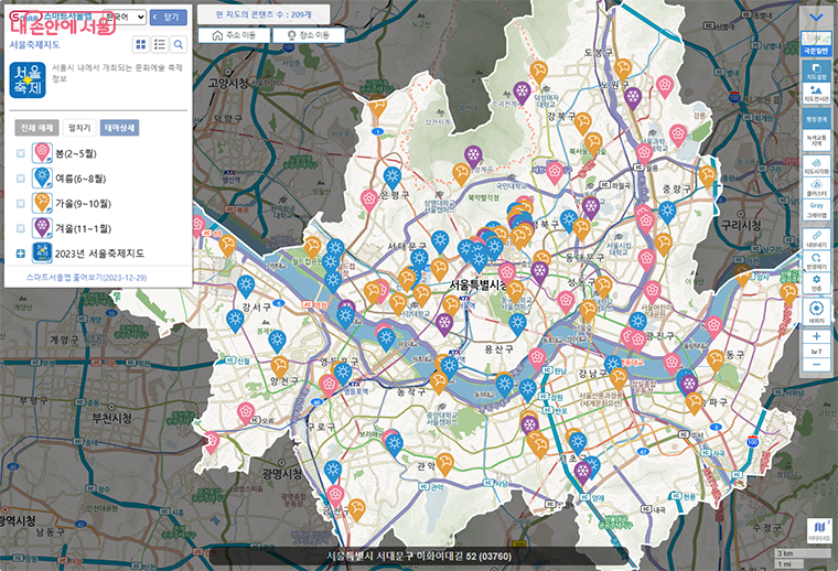 스마트서울맵에서 서울축제지도를 한눈에 살펴볼 수 있다.