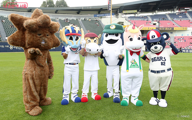 2022년 잠실야구장 KBO올스타전에 등장한 추억의 옛 구단 마스코트들. 왼쪽부터 삼성 라이온즈, MBC 청룡, 청보 핀토스, 태평양 돌핀스, 현대 유니콘스